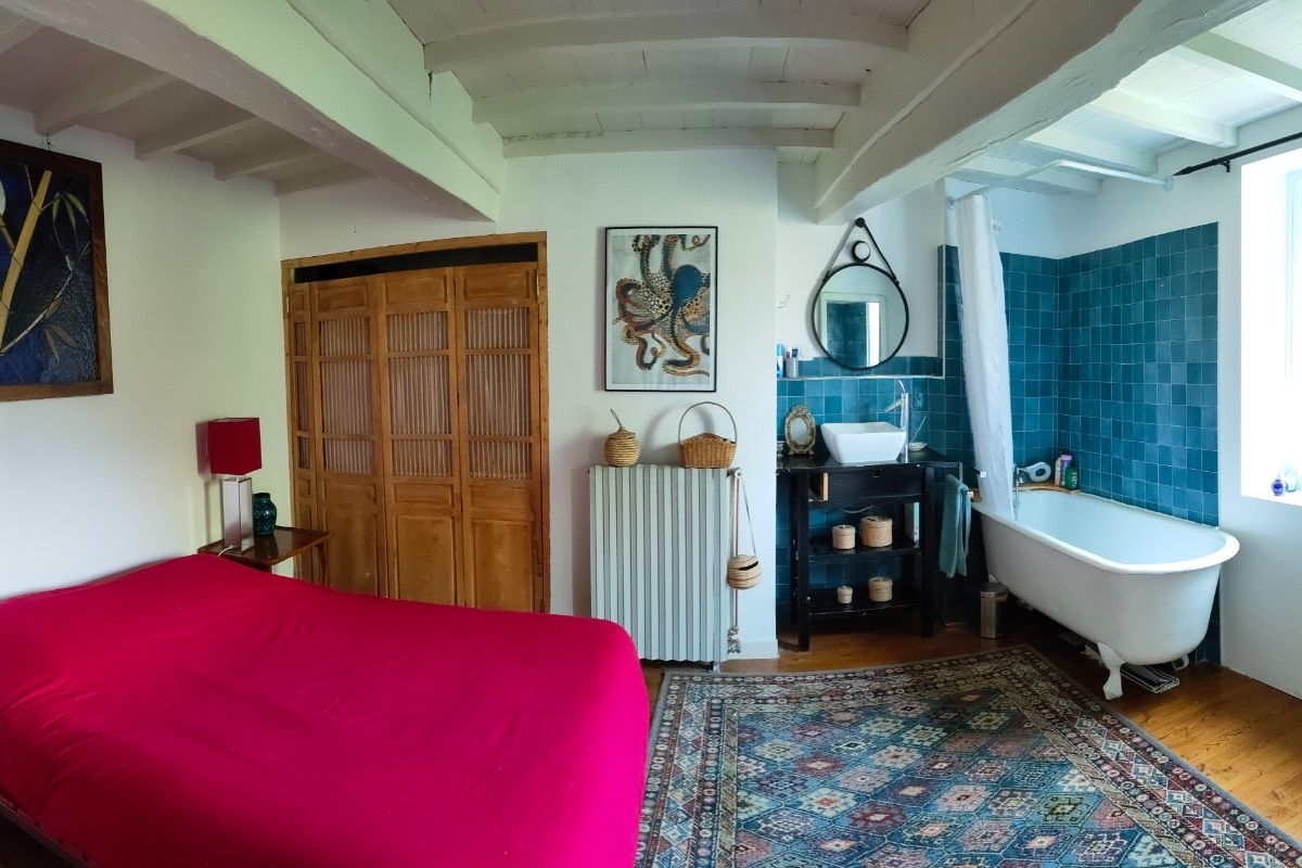 Cet ancien moulin à eau a été bâti avant la Révolution française. Suite à des rénovations, l’ancien moulin a été restauré et abrite la partie nuit, la partie la plus récente est plus propice à la vie en journée. Une belle restauration pour cette maison : le moulin a conservé du caractère à travers les différentes rénovations : cheminées, poutres apparentes, planchers et tomettes. C’est une maison d’artiste atypique, pleine de couleurs et de vie. Lorsque nous avons repris le moulin en 2021, nous avons réalisé quelques travaux pour créer de nouvelles chambres, tout en conservant l’esprit de la maison.