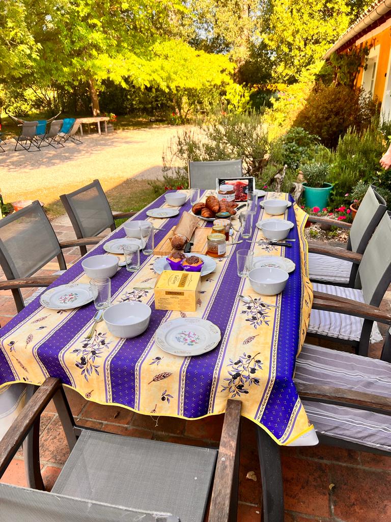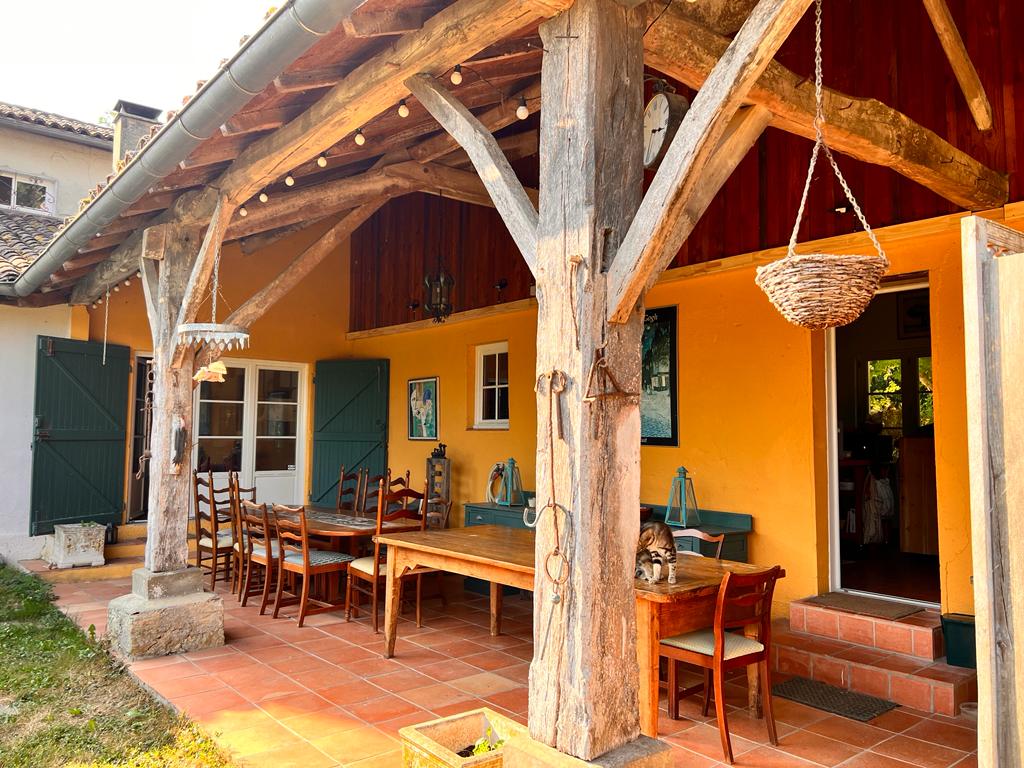 Une terrasse couverte de plus de 30 m2 au nord accédant directement à la cuisine, pour profiter des repas à l’ombre, avec un auvent attenant.